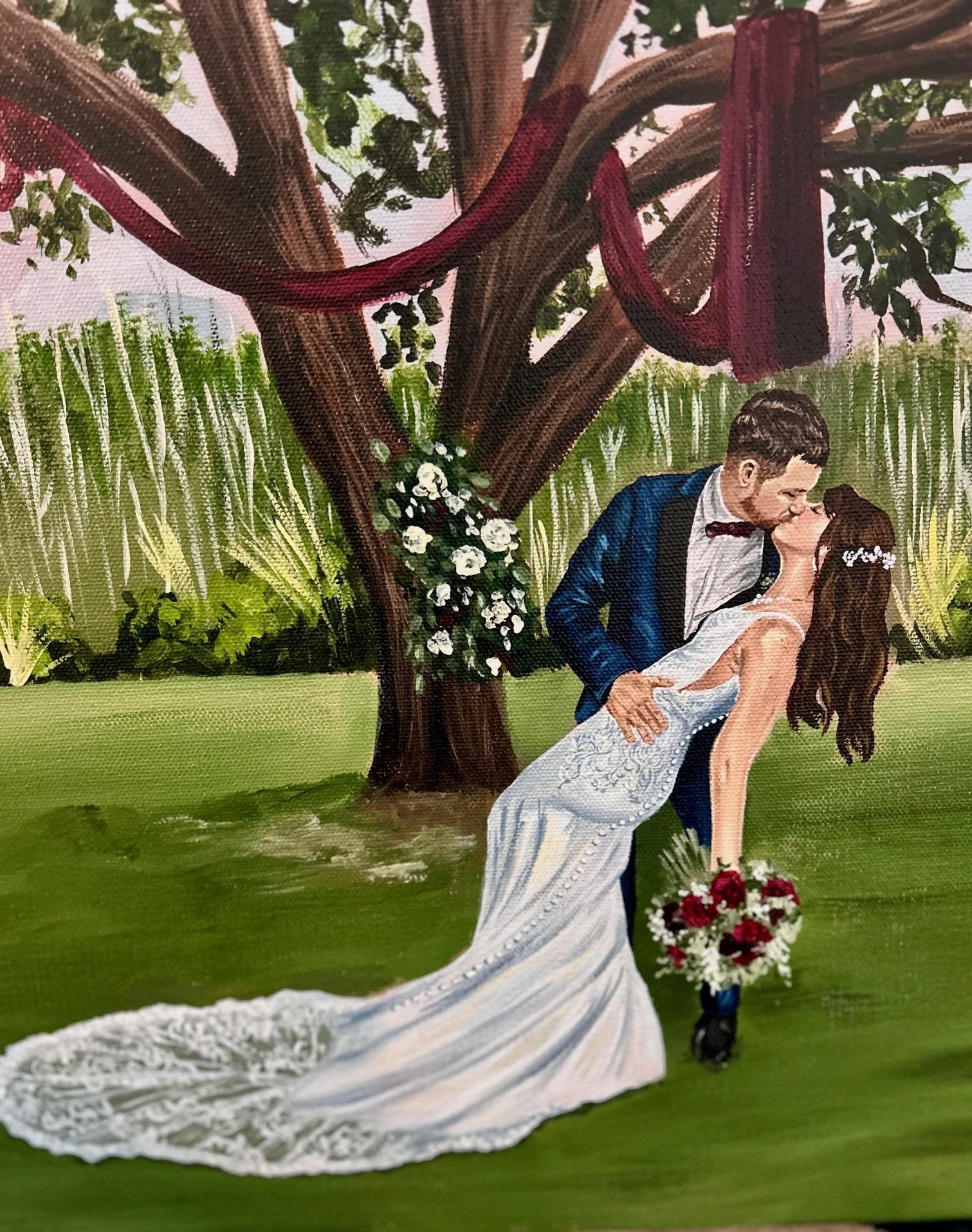 Don't stress! If you are interested in getting a painting of your wedding but the date is already booked, we are happy to paint a picture of your wedding from a photograph. It is a great alternative!